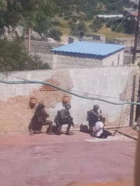 Israeli occupation soldiers used a young Palestinian man as a human shield during their military raid into Jenin refugee camp in the occupied West Bank.EndIsraeliApartheid